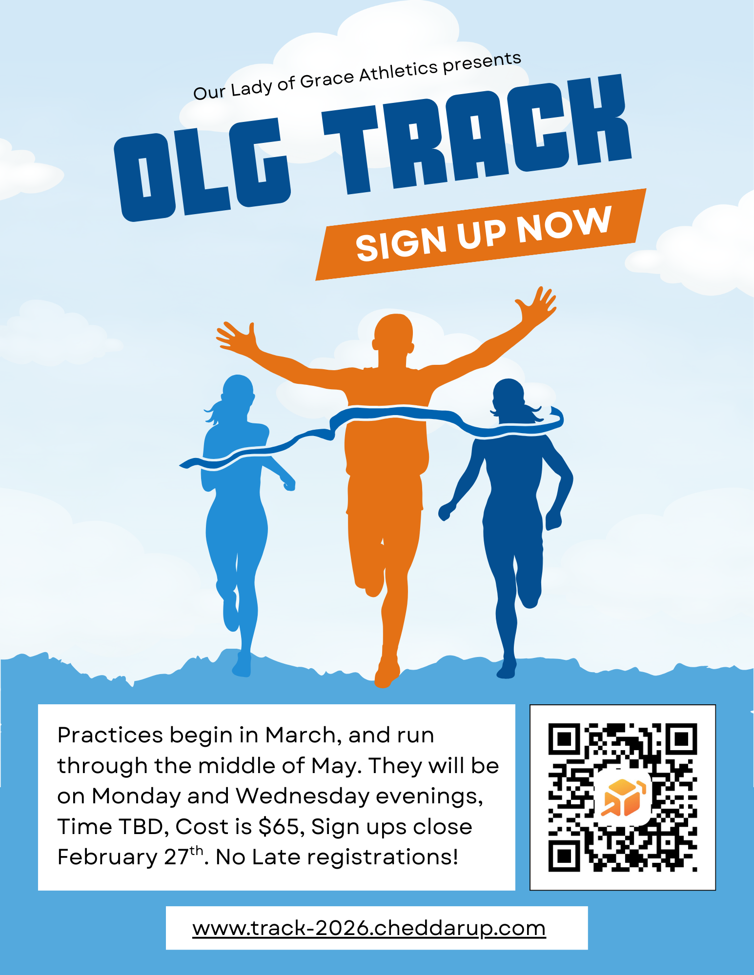 How: Athletics at OLG relies heavily on volunteers, not just coaches but parents to run the scoreboard or be a line judge at volleyball or help get kids to start lines in track. Signing up for sports at OLG means signing up to help out to make it a great experience for all!